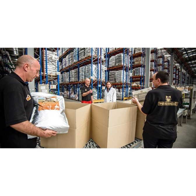 ウルフブラット製品は、ヨーロッパのペットフード基準を満たしており、さらに専門のスタッフや獣医師、動物栄養学者などと連携し、世界中から新鮮で最高級の食材を調達し、独自のレシピにて、様々なペットの環境に対応すべく、日々研究を続けております。原材料では、鶏肉、ラム肉、魚はもとより、日本では珍しい馬やウサギといった原料や、年々希少性が高くなっている鹿肉(ベニソン)を使い、野菜や果物、ハーブ、薬草などを使用して、独自ブレンドの製品を提供いたします。また、人口保存料は使用しておりません。天然の酸化防止剤としてミックストコフェロールとローズマリー抽出物をミックスしております。