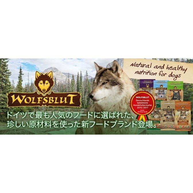WOLFSBLUTは、ドイツでトップレベルのドッグフードブランドです。厳選された最高級の肉と魚を使った様々なドッグフードをご提供いたします。それぞれのWOLFSBLUT製品は、ペットの栄養に関する最新科学に基づいて、犬の祖先であるオオカミに必要とされる特別な栄養を摂取できるように作られております。