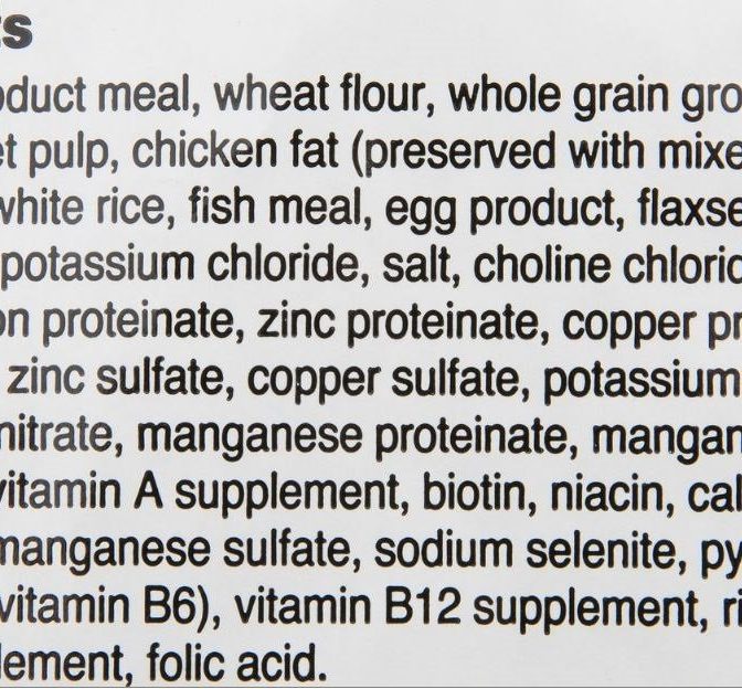 チキン副産物ミール、小麦粉、全粒挽割トウモロコシ、米ぬか、乾燥ビートパルプ、鶏脂肪(混合トコフェ ロールで保存)、キビ、挽割白米、フィッシュミール、加工卵、亜麻仁、ナチュラルチキンフレーバー、塩化 カリウム、食塩、塩化コリン、乾燥ラクトバチルスプランタルム発酵物、乾燥枯草菌発酵物、乾燥ラクトバチ ルスアシドフィルス発酵物、乾燥エンテロコッカス・フェシウム発酵物、乾燥ビフィドバクテリウム・アニマ リス発酵物、ビタミンEサプリメント、鉄タンパク化合物、亜鉛タンパク化合物、銅タンパク化合物、硫酸第? 鉄、硫酸亜鉛、硫酸銅、ヨウ化カリウム、硝酸チアミン、マンガンタンパク化合物、酸化マンガン、アスコル ビン酸、ビタミンAサプリメント、ビオチン、ナイアシン、パントテン酸カルシウム、硫酸マンガン、亜セレ ン酸ナトリウム、塩酸ピリドキシン(ビタミンB6)、ビタミンB12サプリメント、リボフラビン、ビタミンDサ プリメント、葉酸