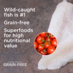 白身魚、フィッシュミール、サツマイモ、エンドウ豆、ひよこ豆、エンドウ粉、キャノーラ油(混合トコフェ ロールで保存)、トマト滓、馬鈴薯タンパク、亜麻仁、ナチュラルフレーバー、食塩、塩化コリン、乾燥チコ リ根、ユッカエキス、トマト、ブルーベリー、ラズベリー、ラクトバチルス?アシドフィルス、ビフィドバクテ リウム・アニマリス、ラクトバチルス・ロイテリ、ビタミンEサプリメント、鉄タンパク化合物、亜鉛タンパク化 合物、銅タンパク化合物、硫酸第一鉄、硫酸亜鉛、硫酸銅、ヨウ化カリウム、硝酸チアミン(ビタミンB1)、 マンガンタンパク化合物、酸化マンガン、アスコルビン酸、ビタミンAサプリメント、ビオチン、ナイアシン、 パントテン酸カルシウム、硫酸マンガン、亜セレン酸ナトリウム、塩酸ピリドキシン(ビタミンB6)、ビタミ ンB12サプリメント、リボフラビン(ビタミンB2)、ビタミンDサプリメント、葉酸