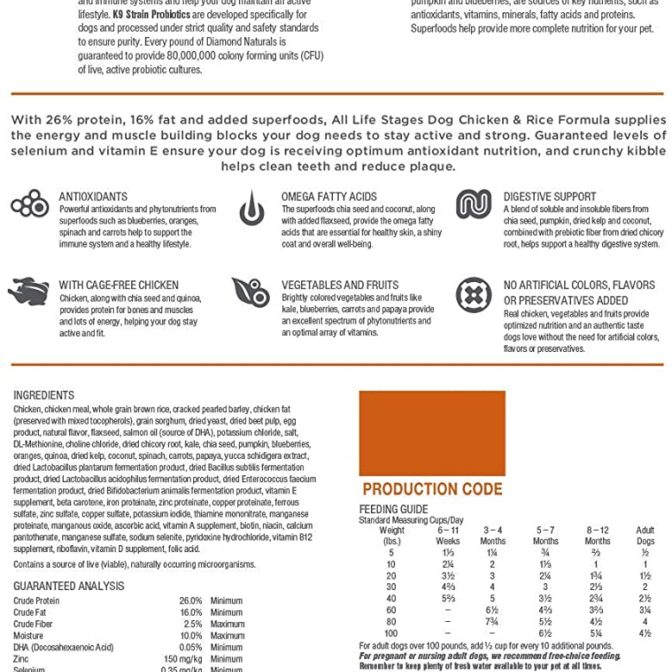 動物の副産物と小麦を不使用で、優れた品質の成分で作られたダイヤモンドナチュラルズドッグフードは、すべてのペットに完全で総合的な栄養を提供します。